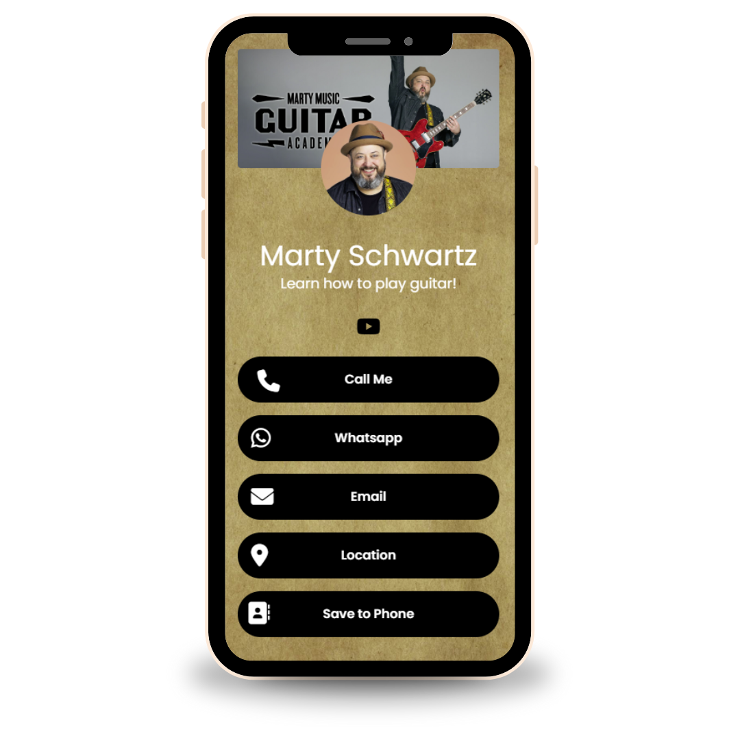 Cover image, profile picture, links to all of your social media, emails, numbers, about us section, images and an option to download the vCard to your phone.